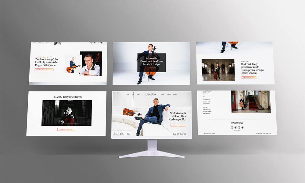 For Virtuoz / Jan Zvěřina (Prague Cello Quartet), I designed and built the website in Webflow independently. I integrated the YouTube Data API to automatically fetch and display video view counts and performance stats, allowing the site to update itself without manual maintenance. I created the visual layout and typography with an emphasis on clarity, elegance and a refined musical tone.